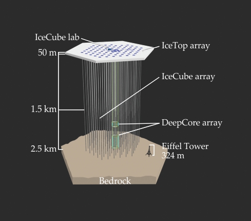 That search has recently been joined by the gargantuan IceCube detector, a cubic kilometer of instrumented ice deep under the South Pole, as shown in the figure. The collaboration spent a full year looking for high-energy neutrinos from the mutual annihilation of WIMPs gravitationally trapped in the Sun’s core.
